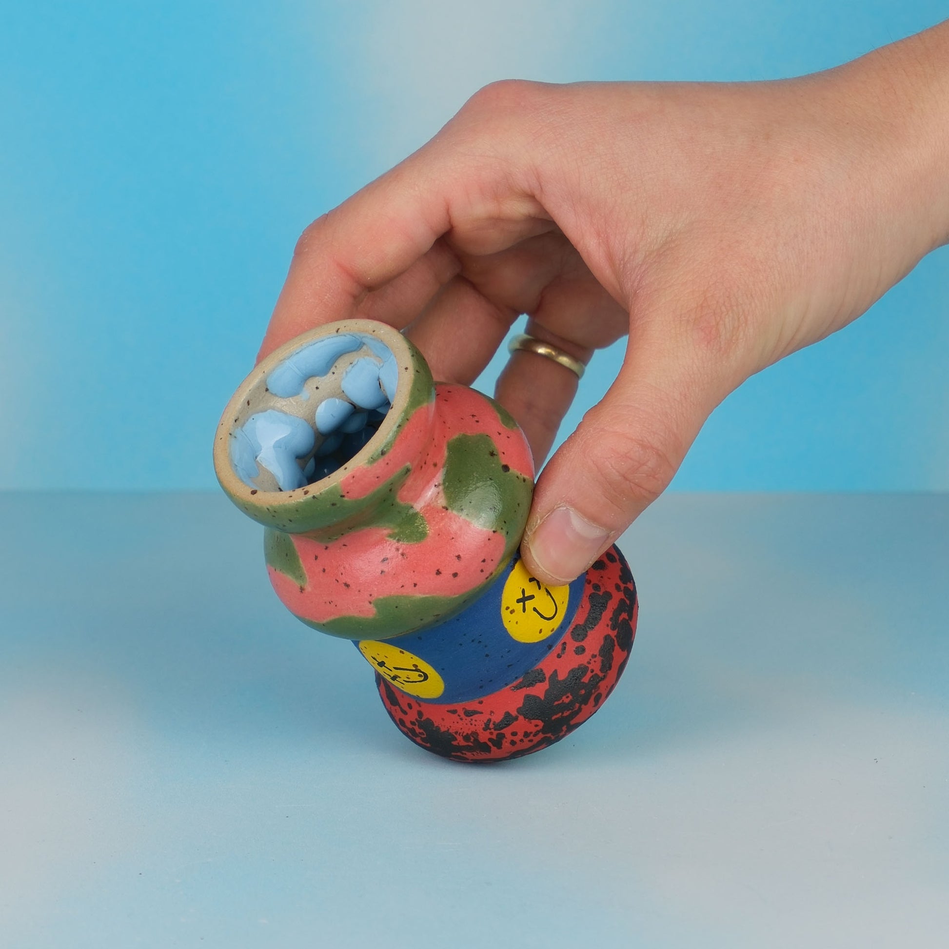 Standing just 9 cm tall, this miniature treasure features a hand-painted patterns and smileys that adds character and warmth to any corner. Perfect for displaying a single stem, creating a decorative accent on shelves, or gifting to a special friend.One-of-a-kind addition to your home.